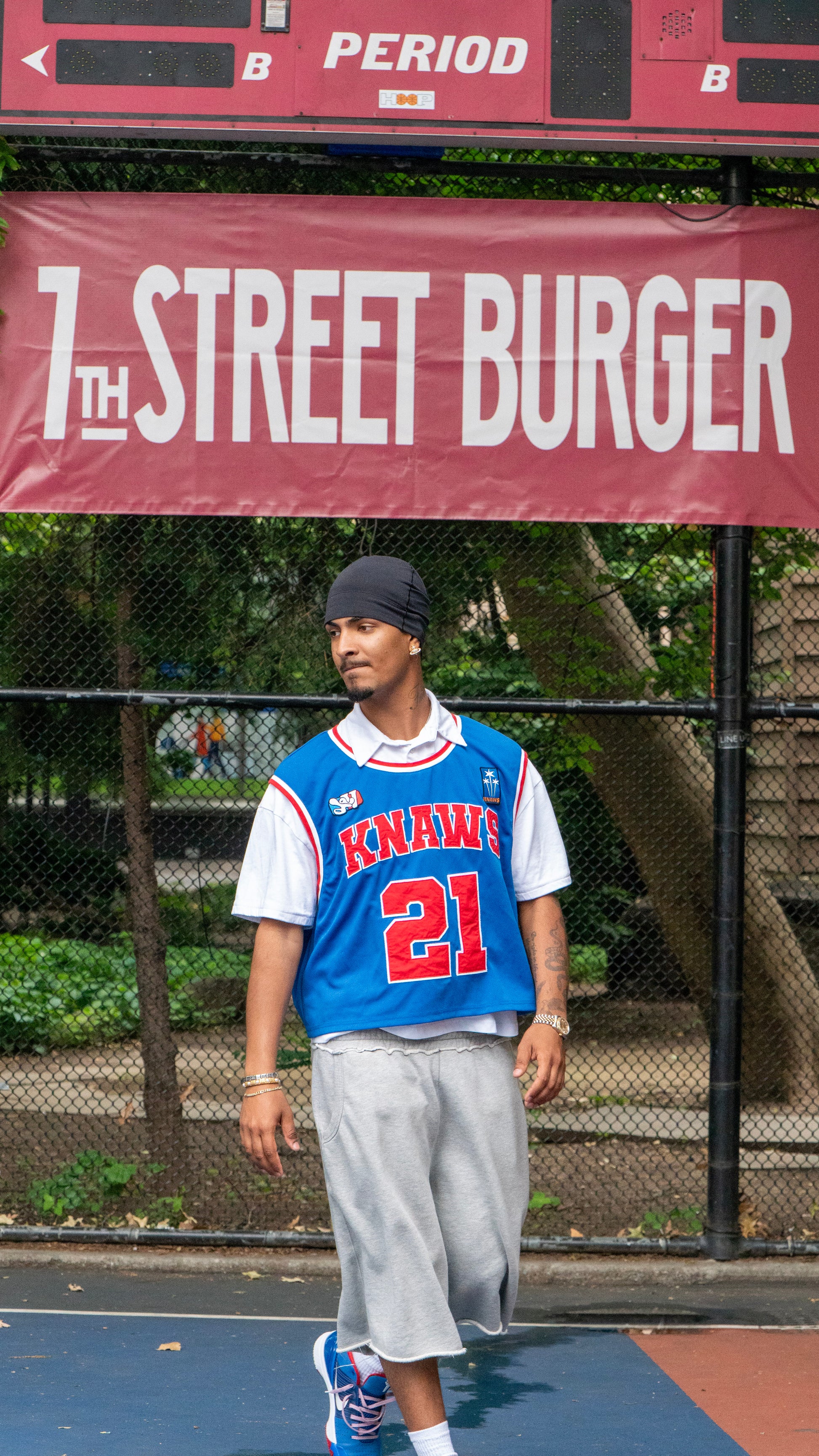 Varsity Poloché fuses a classic polo with a basketball jersey, crafted from a 100% polyester-cotton blend. Designed with bird’s eye mesh for breathability, ribbed elastic for durability, and bold tackle twill embroidery layered in two tones. Finished with woven tags, custom logo patches, and button details. Cropped fit.